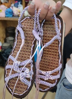上午7:50到岗,先把昨日剩余鞋面、鞋底、麻线、钢针按尺码分类上架,再对照义仓质量卡尺复核针距、边距标准。集中整理制鞋材料与工具,熟悉基础编织手法和尺寸标准,按流程完成一双鞋子的基础编织部分,确保纹理紧密、版型规整。