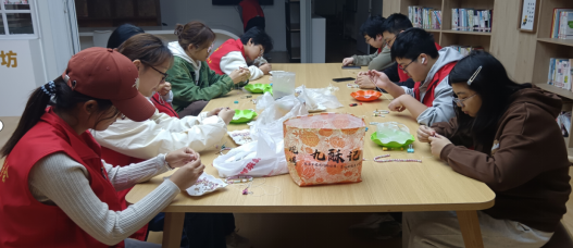 4.手链编制:在手链编制环节,志愿者们充分发挥创意与动手能力,聚在一起认真编制手链。大家相互交流技巧,现场氛围轻松又温馨。一个个精美的手链逐渐成型,这些手链不仅是创意的结晶,也为后续公益活动增添了温暖的元素。