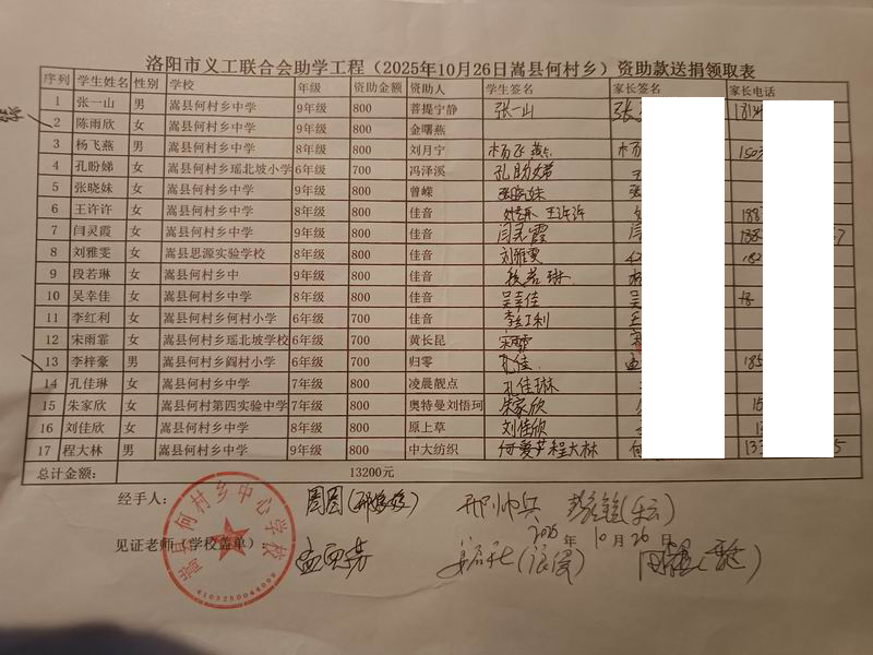 序号 学生姓名 性别 学校 年级 资助人 资助金额