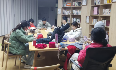 活动现场专门设置手工台,志愿者们齐聚一堂整理毛线