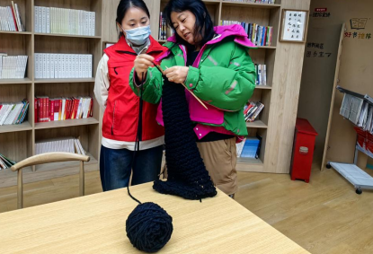 与此同时,在手工编织区,气氛格外温馨。义工成员在经验丰富的老师指导下,认真学习和体验织围巾的技巧。从持针手法、基础针法到成品收针,老师一步步耐心演示,学员则专注地跟着操作。这个环节不仅让大家掌握了一项手工技能,更在互帮互学的过程中紧密了邻里关系,让志愿服务精神在指尖传递中悄然升华。