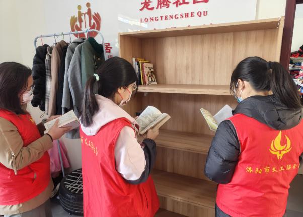 4. 书籍整理,书香流转: 另一组志愿者则投身于书海,对捐赠的书籍进行筛选、擦拭、分类并规范上架。他们让每一本好书都找到了自己的“位置”,使得知识能够更有序、更高效地在社区居民间流转,丰富了大家的精神文化生活。