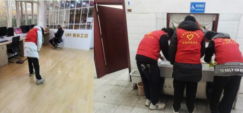 二.活动开展 1.打扫卫生 为了保障义仓的干净整洁,确保接下来的活动顺利进行以及为邻里提供良好的活动空间,本次义仓活动组织志愿者对义仓进行全方位的打扫。包括扫地,擦玻璃与桌子,清理盘子,清洗杯子。
