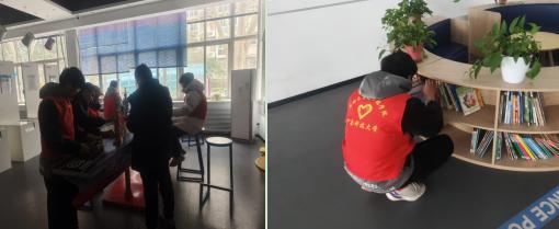 4.整理玩具与书籍 为确保儿童活动安全整洁,一层组织志愿者对于儿童区域进行打扫,整理儿童所需玩具以及书籍。