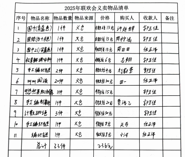 说明:已经义卖的物品在义仓进行了下架和兑换处理,义卖费用由联欢会义卖负责人收取并交义工联财务。未义卖的物品已经返回义仓并重新上架。