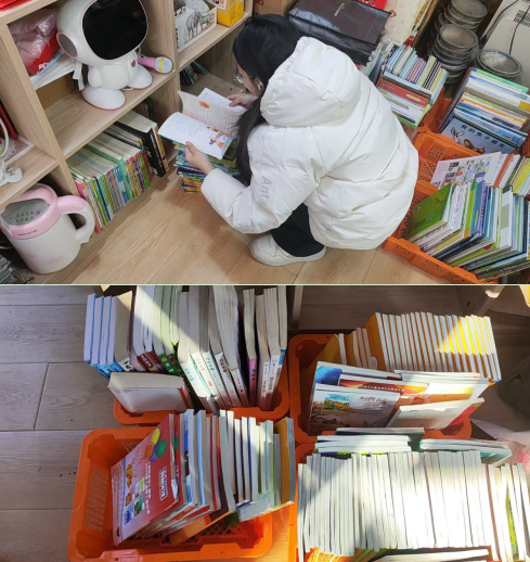 这看似平常的整理,其实也是一种延续——延续着前日大雪中那份“一人一心”的专注与坚持。无论是编织围巾,还是拣选书籍,每一份付出都在将善意具象化,让爱有形状,让暖意可触。这些书,这些物,不久后将带着志愿者的温度,被送往需要它们的人手中。