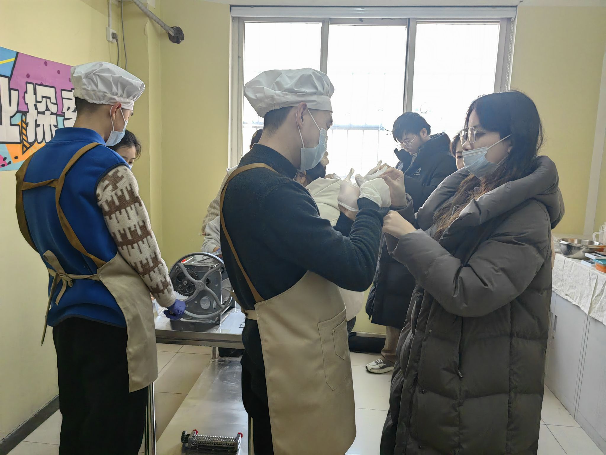 9点30分,制作环节正式开启,工坊内瞬间变成充满创造力的“色彩实验室”。在志愿者与专业老师的一对一协助下,学员们亲手将面粉与新鲜果蔬汁混合,反复揉搓面团,感受着食材从松散到紧实的变化,最后见证一根根色彩鲜亮的面条成型,眼中满是成就感。过程中,志愿者们注重情绪上的支持——当孩子因面团不易成型而略显急躁时,志愿者轻声鼓励、耐心指导;当他们成功做出第一份面条时,志愿者及时送上掌声与赞美。这种“不催促、不替代、多鼓励”的陪伴方式,让孩子们在自主探索中提升了动手能力与专注力。
