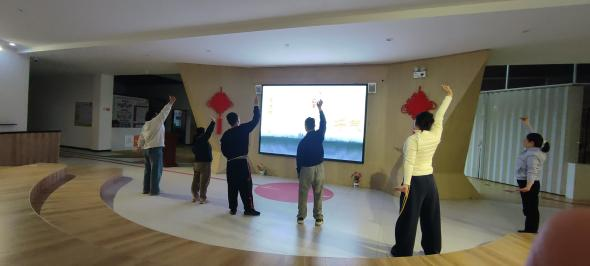 活动开始前,老师带领志愿者们学习了八段锦的基本动作。大家认真投入,为接下来的陪伴做好准备。