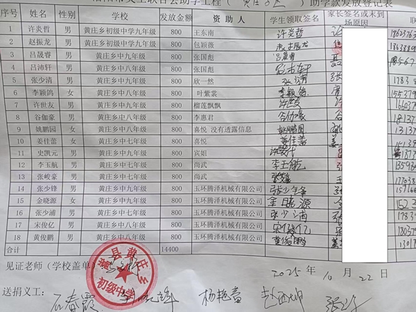 2025年10月26日嵩县何村学区资助款送捐(16名学生,12400元)