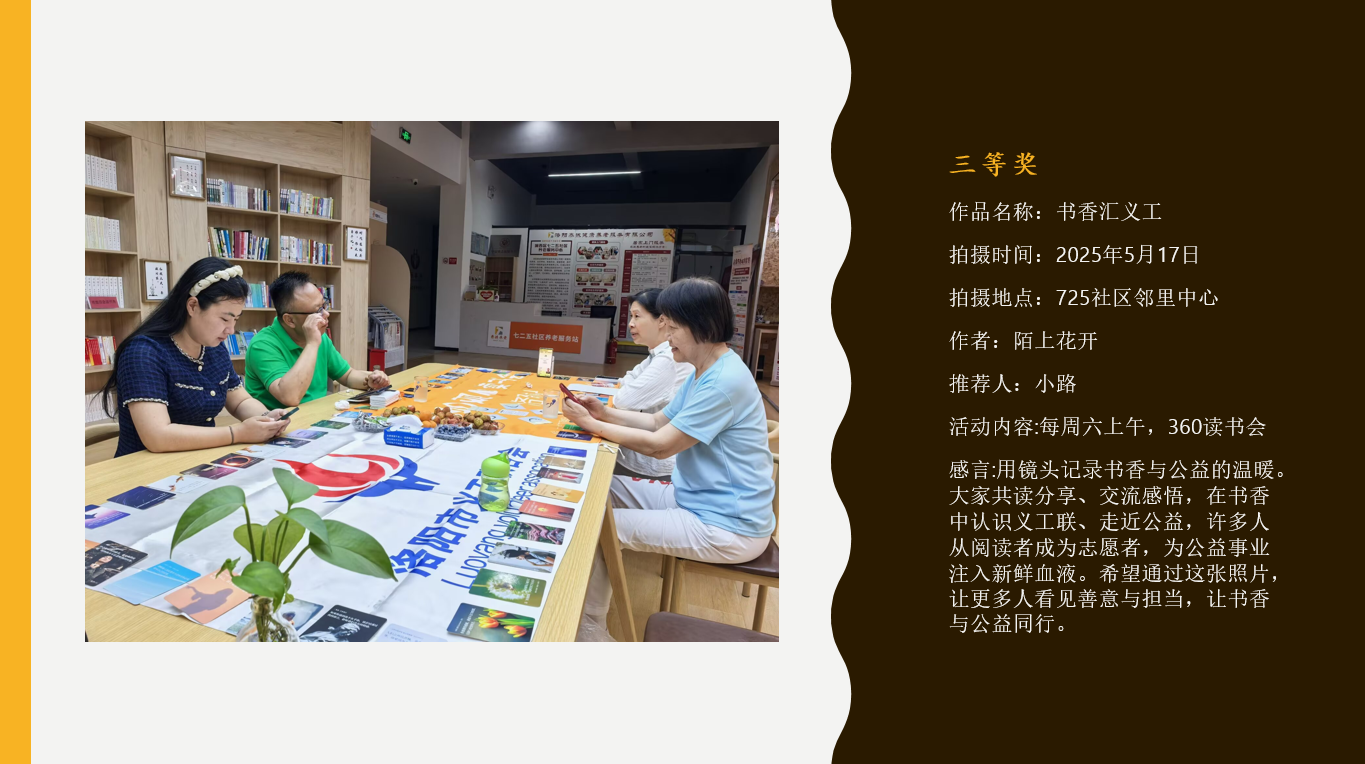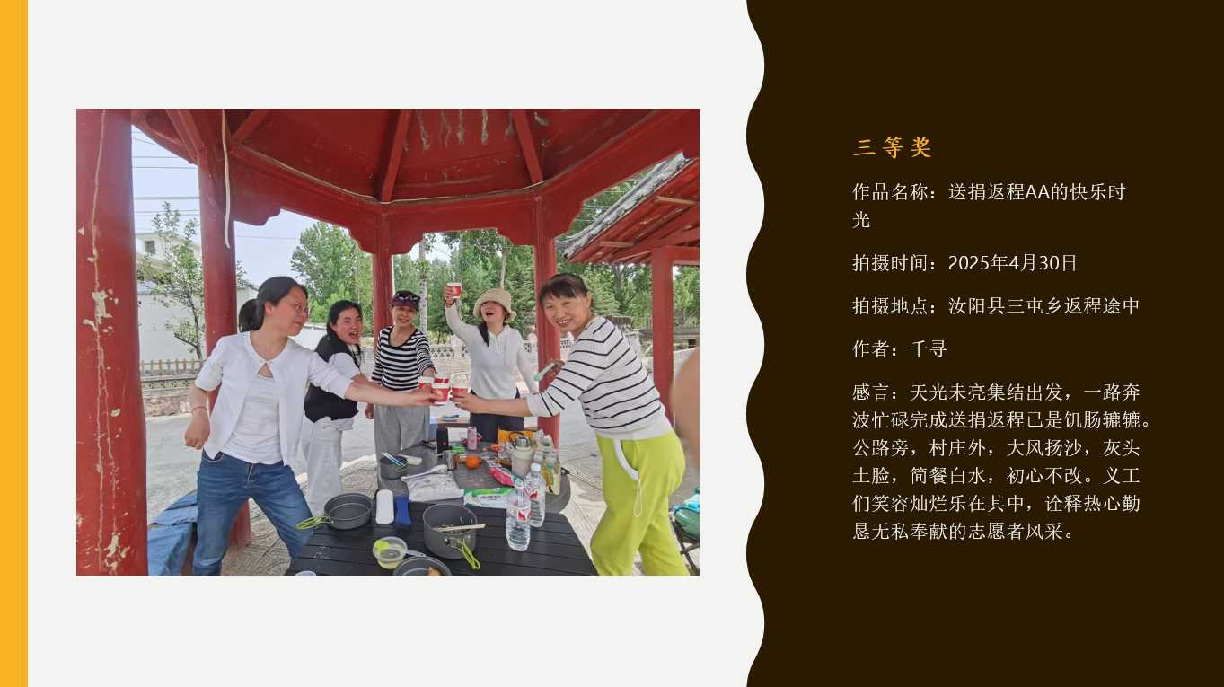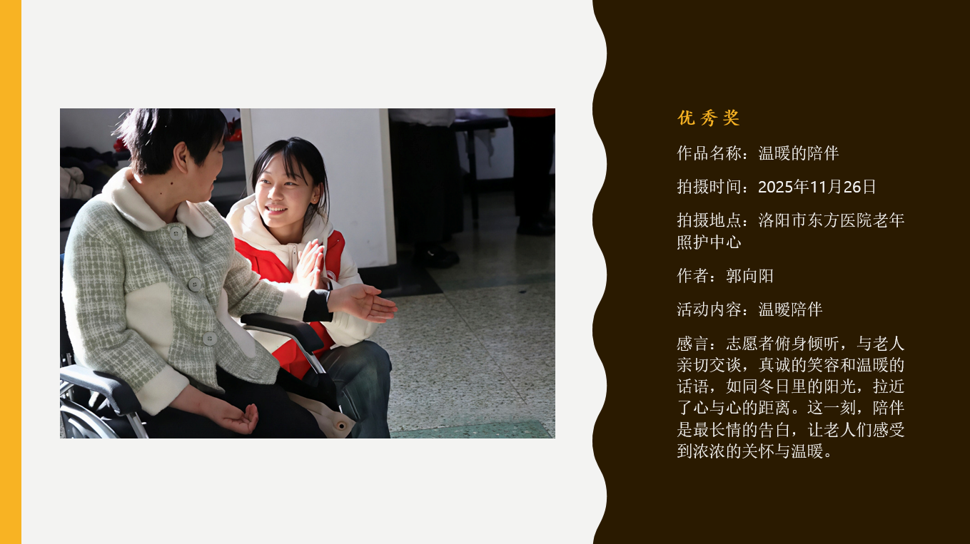 感谢所有参赛义工的用心记录,是你们用镜头捕捉了公益路上的每一份感动;感谢各位评委老师专业严谨的评审,为我们守住了作品的质量与温度;更感谢社会各界人士的鼎力支持,让这场爱心之约得以圆满呈现。