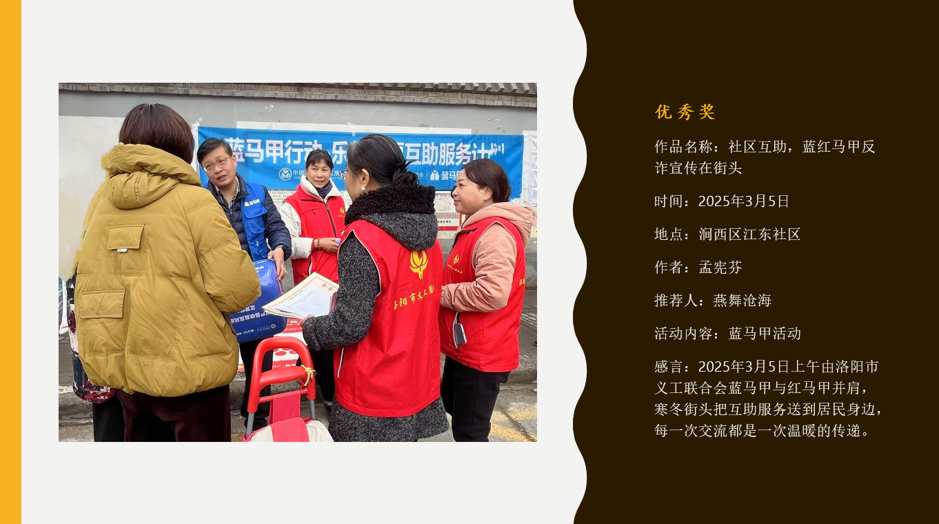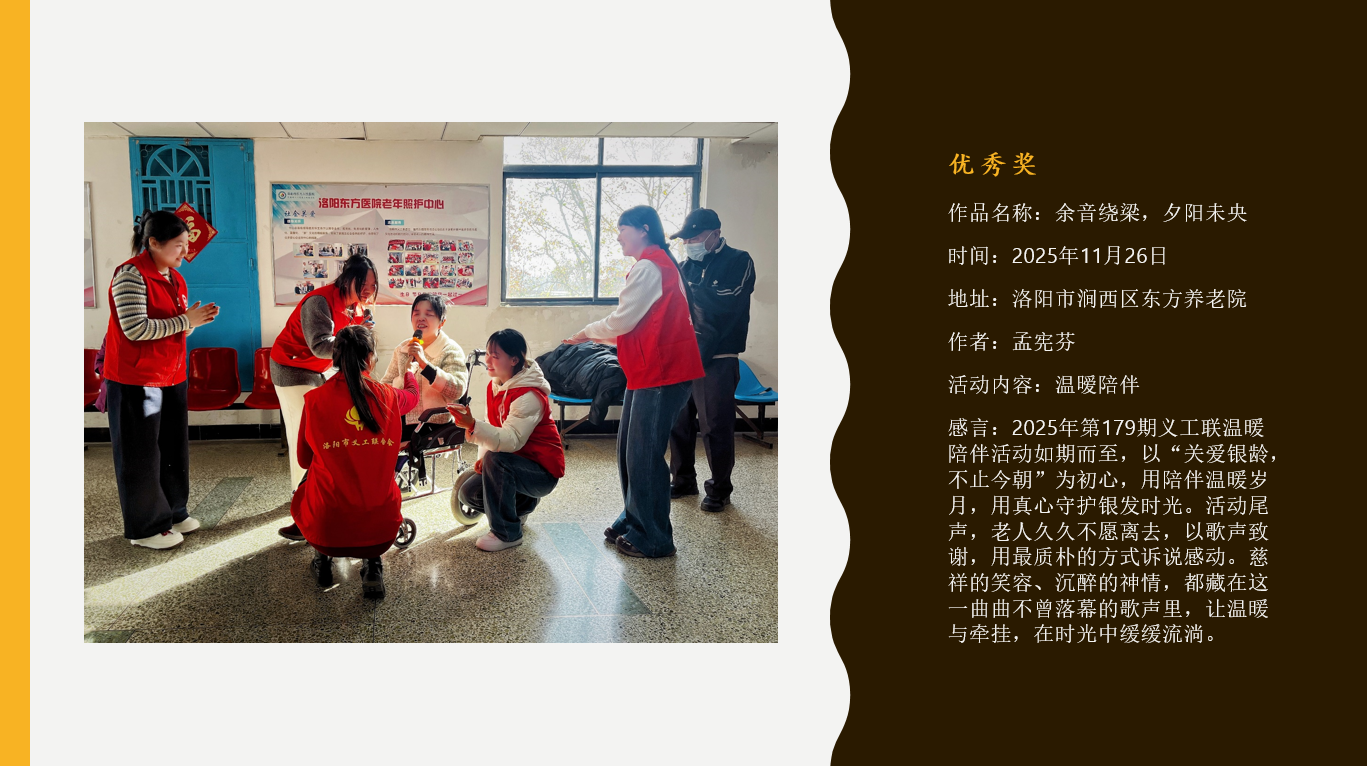 本次大赛的最高荣誉,将在 洛阳市义工联合会 21 周年生日庆典 上隆重颁发!让我们共同期待,在庆典现场见证这些温暖时刻的绽放。